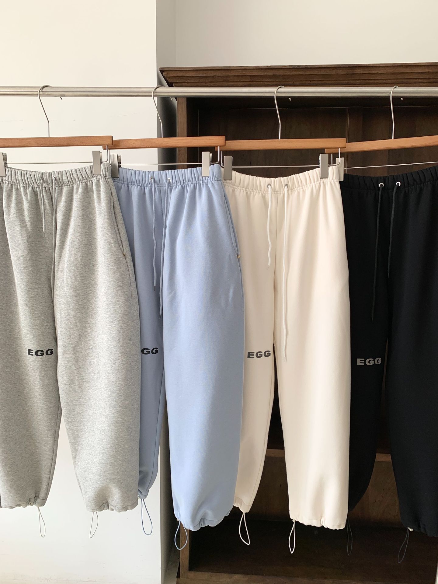 EGG刷毛厚實字母運動長褲 / 四色